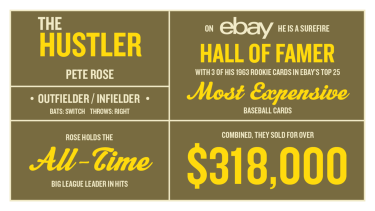 While not yet inducted into the MLB Hall of Fame, Pete Rose will always be a Hall of Famer to eBay with the switch hitter’s chart-topping sales. Not one, not two, but three of Pete Rose’s 1963 Rookie Cards made it onto eBay’s top 25 most expensive baseball cards, having sold for $150,000, $86,100 and $82,601 in a matter of two months! And, just one year later, searches for Rose’s trading cards increased 23%, following the Cincinnati Reds dedication of a statue in his honor.