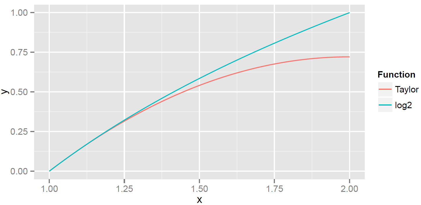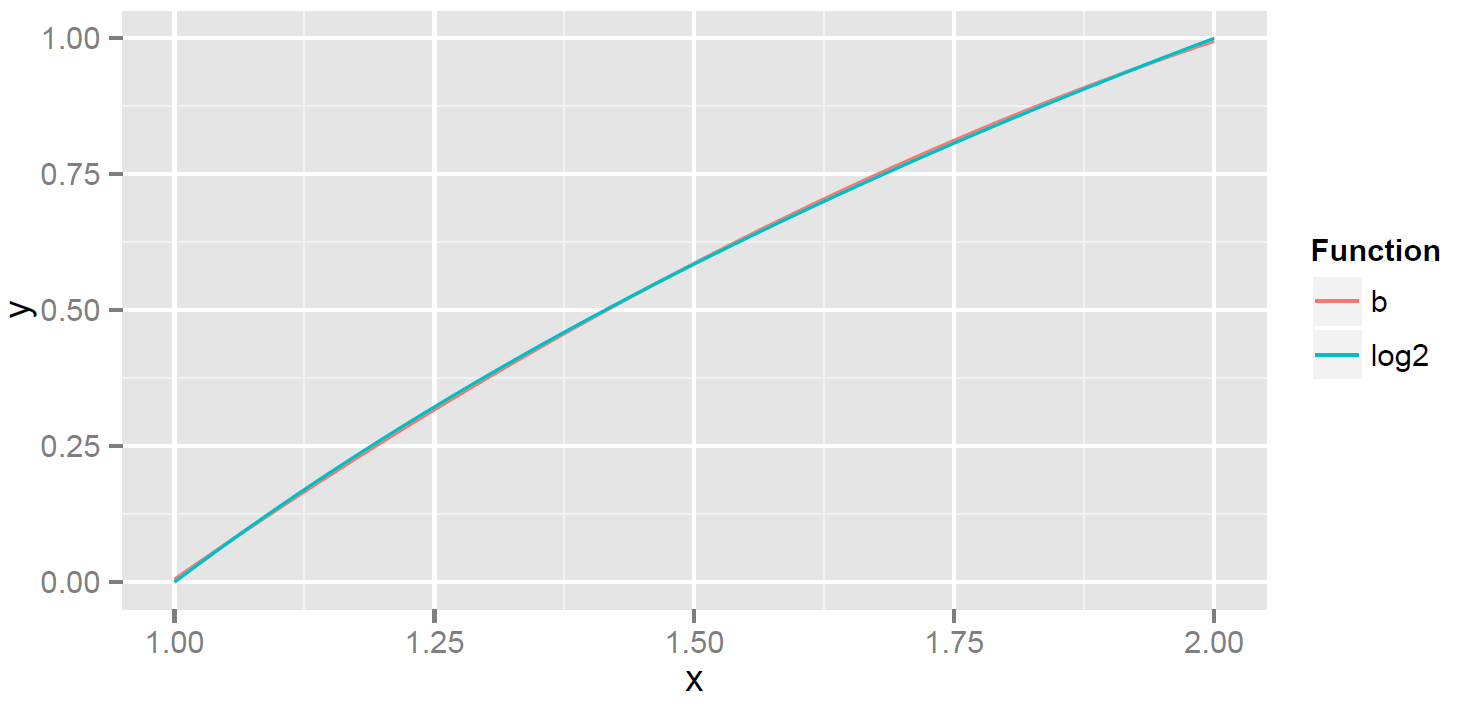Performance profiling of some of the eBay code base showed the logarithm (log) function to be consuming more CPU than expected. The implementation of log in modern math libraries is an ingenious wonder, efficiently computing a value that is correct down to the last bit. But for many applications, you’d be perfectly happy with an approximate logarithm, accurate to (say) 10 bits, especially if it were two or three times faster than the math library version. This post is the first of a series that examines approximate logarithms and the tradeoff between accuracy and speed. By the end of the series, you will see how to design fast log functions, and will discover that on a MacBook Pro, you can get a roughly 3x speedup if you are willing to settle for 7 bits. Alternatively, if you want more accuracy you can get 11 bits with a 2x speedup. The numbers might vary for your target machine, but I will present code so that you can determine the tradeoffs for your case.