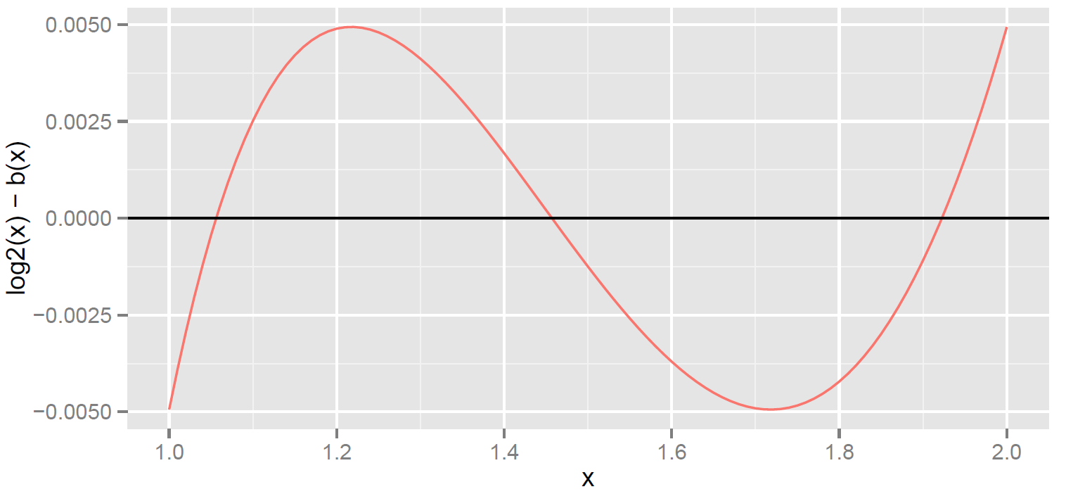 Here’s a justification for my claim that is good to 5 bits. The max relative error for