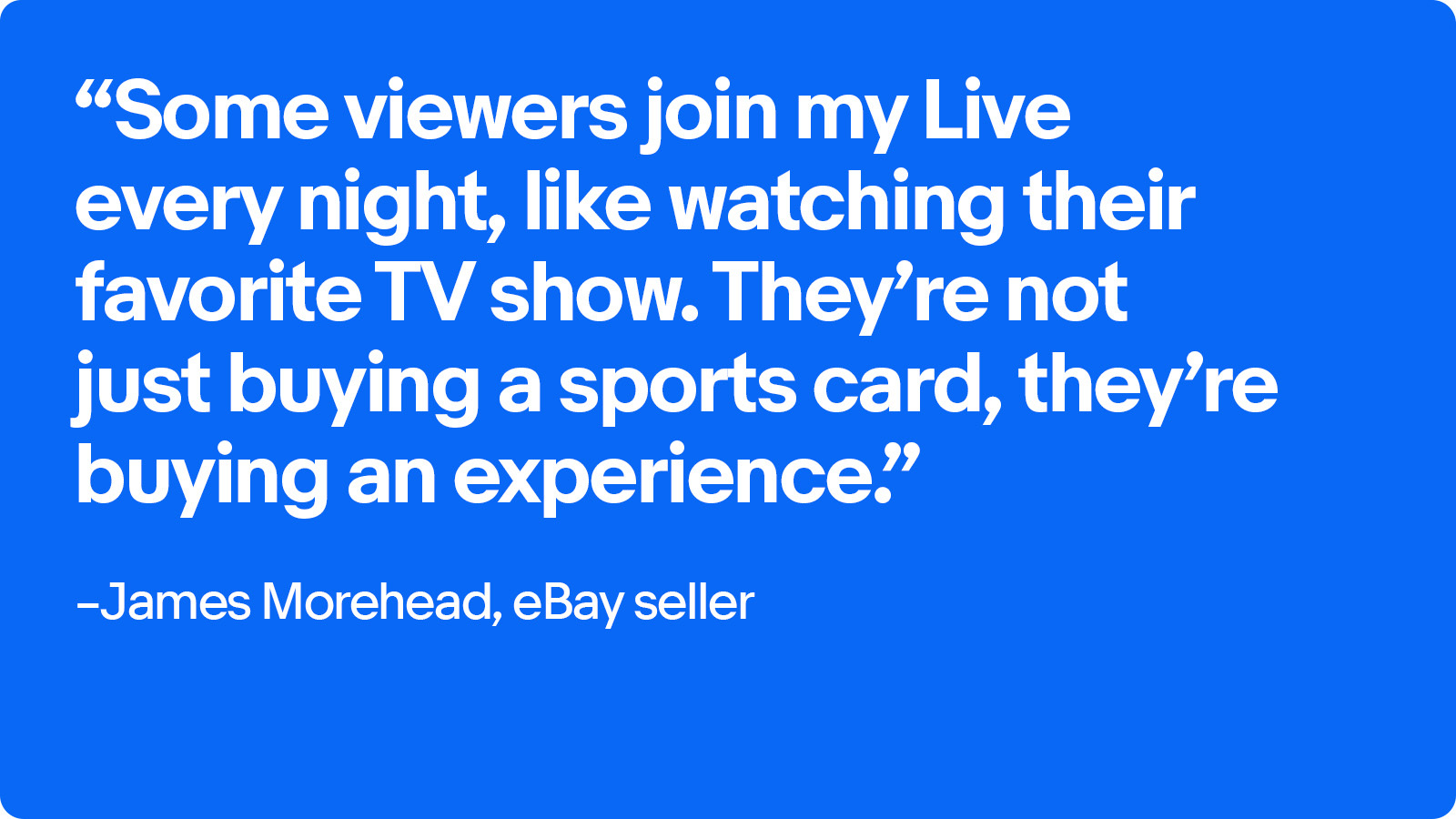 On any given night, eBay Live seller James Morehead hosts live card breaks, opening packs of baseball and football cards on camera while collectors watch, react, and get hyped over big pulls. Streaming six hours a night, six days a week, he’s built a loyal following of superfans who show up for the thrill of the hits and the real-time connection.