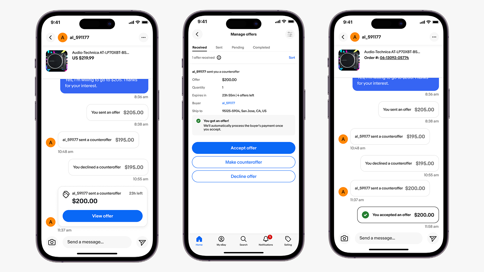 Available via the eBay mobile app and web in the U.S., this update will make price negotiation faster, easier, and more intuitive, helping sellers close more deals while delivering a seamless buying experience.