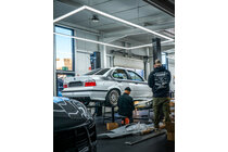 Bei der Umsetzung zeigte die Community gutes Gespür für Stil und Technik. Der 3er erhielt u.a. Angel-Eyes-Frontscheinwerfer und Eagle-Eyes-Heckleuchten, Felgen im Alpina-Design und eine zweiflutige Edelstahl-Abgasanlage. Für das Fahrwerk fiel die Wahl auf ein sportliches KW-Gewindefahrwerk, das den klassischen E36 optisch tieferlegt und fahrdynamisch aufwertet. Die abgestimmte Tieferlegung und das Zusammenspiel aus Rädern, Fahrwerk und Folierung verleihen dem Showcar einen stimmigen Auftritt, der seinen Charakter als Sportwagen unterstreicht. Für den kompletten Umbau wurden rund 30 Komponenten verbaut, die ausschließlich aus dem eBay-Sortiment stammen. Darunter Scheinwerfer, Heckspoiler, Felgen, Sportbremsen und -fahrwerk und vieles mehr. Ein Beleg dafür, wie vielfältig und umfassend das Angebot an sofort verfügbaren Ersatz- und Nachrüstteilen bei eBay ist und welche Möglichkeiten es Schrauber*innen und Tuning-Fans bietet, ihre eigenen Projekte zu verwirklichen.