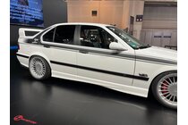 Im Innenraum rückt die Community den sportlichen Charakter des Autos in den Vordergrund: Sportsitzbezüge in M-Optik und VDO-Zusatzinstrumente für Öltemperatur und -druck schaffen eine klare Anlehnung an den Motorsport und lassen das Cockpit insgesamt Fahrer-orientiert wirken. Beim Außendesign setzt die Community auf Understatement: Ein sportlich-eleganter Dekorstreifen in dezenter Schwarz-Weiß-Optik nimmt die Linienführung der Karosserie auf und betont ihre Proportionen, ohne sie zu überzeichnen. Dadurch entsteht ein Community-Showcar, das Tuning als Form von Understatement interpretiert – mit einer klaren, sportlichen und zugleich zurückhaltenden Gestaltung, die das Stilgefühl der Community sichtbar macht.